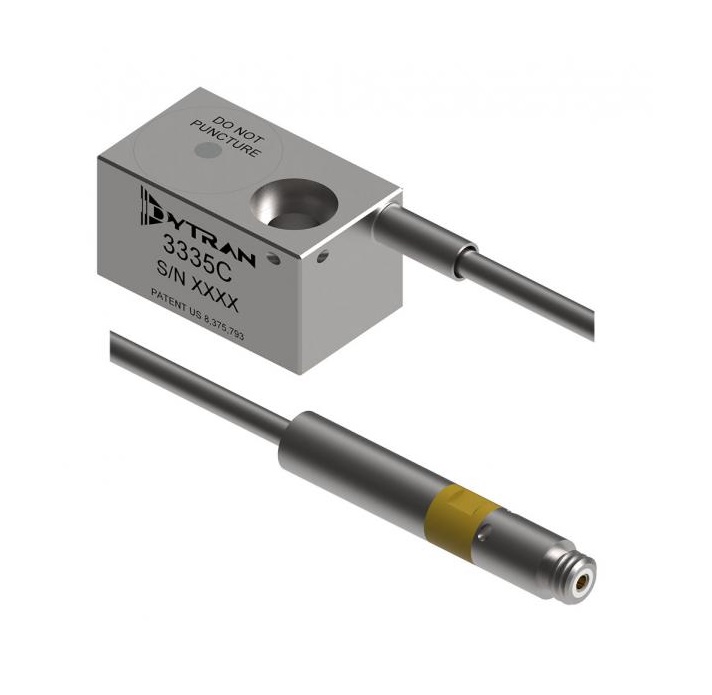 Dytran 3335C超高溫加速度傳感器,壓電式電荷輸出,1-2 pC/g 靈敏度,2500Hz上限頻率響應(±5%),10-32軸向接頭,35克重量,高達649°C使用溫度