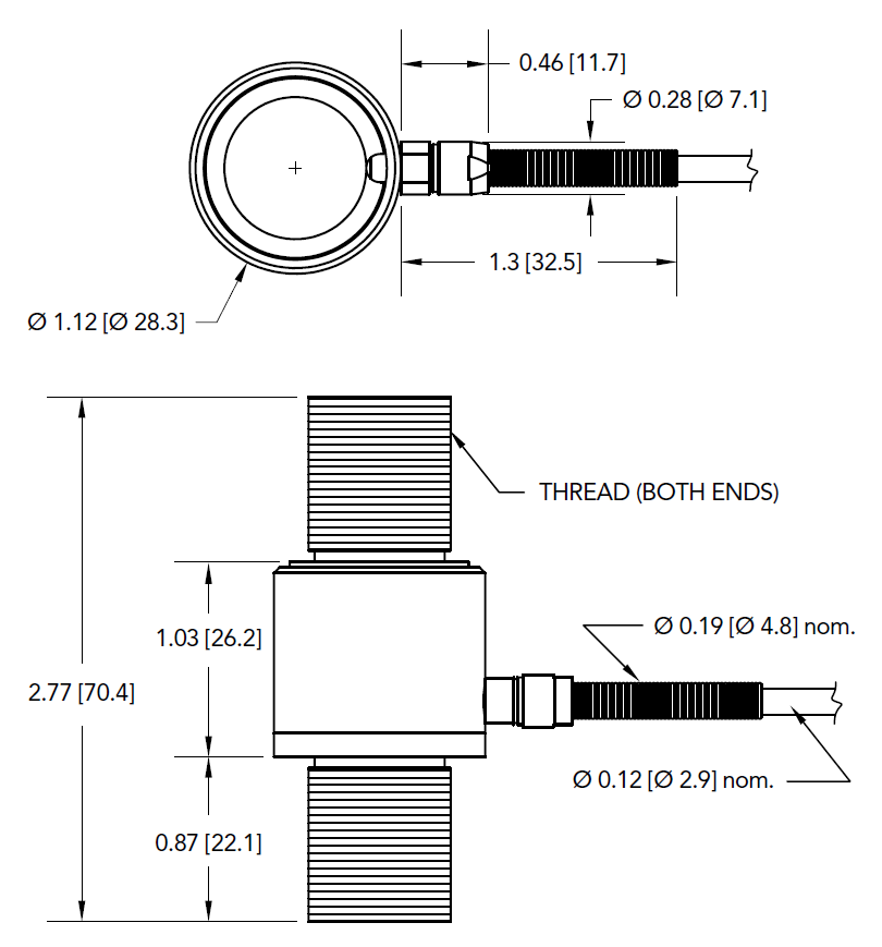 LCM375傳感器是一款軸向拉壓力傳感器,它是為疲勞性測試和拉壓雙向受力應用而設計的。標準的LCM375軸向拉壓力傳感器擁有超強的結構,材質為17-4不銹鋼,傳感器兩端外螺紋,3.0米長度的#28 AWG 4芯 PVC編織屏蔽電纜。該產品高度僅為70.4mm,直徑僅為28.4mm。您可以使用匹配的外部輸出電纜或者現成的聚四氟乙烯電纜。如需更大測量范圍,請參考LCM300\LCM325。