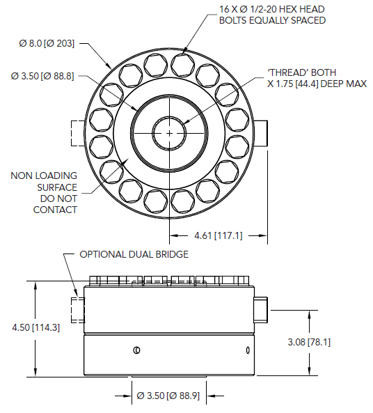 LCF556抗疲勞型輪輻式拉壓力傳感器 FSH02838 222400 N Dual Bridge版本 LCF556,222400 N,抗疲勞型輪輻式拉壓力傳感器,靈敏度:2mV/V,材質17-4 PH S.S.不銹鋼,1 3/4-12-2B英制內螺紋,6針Bendix接口 PT02A-10-6P,Dual Bridge版本。